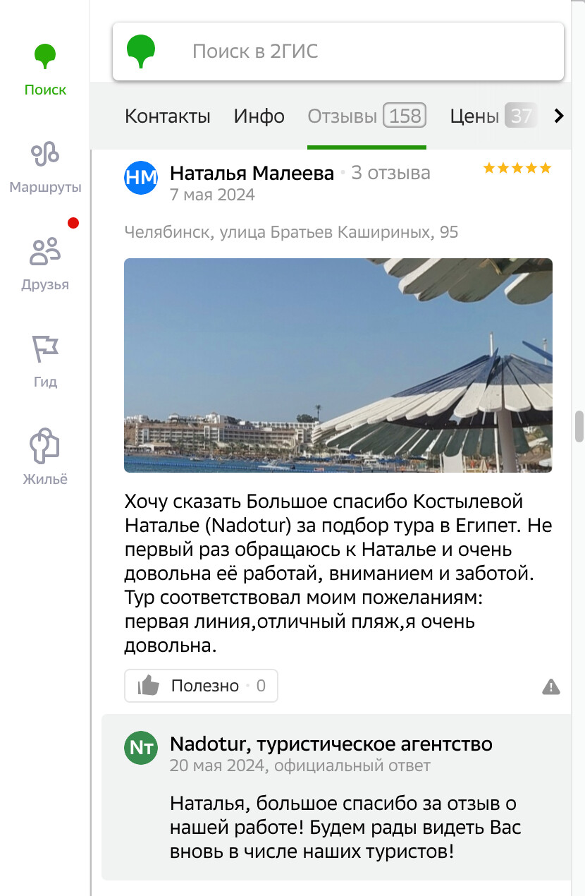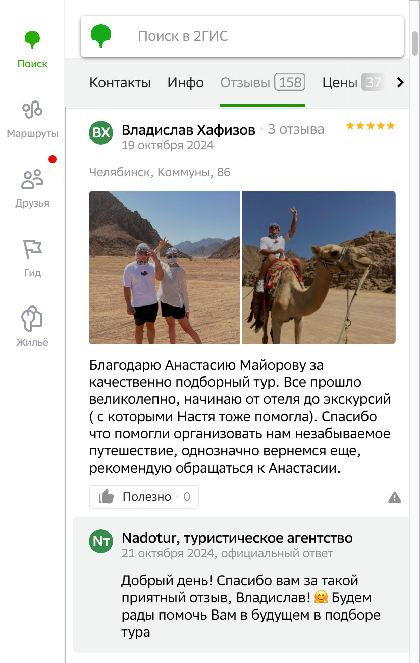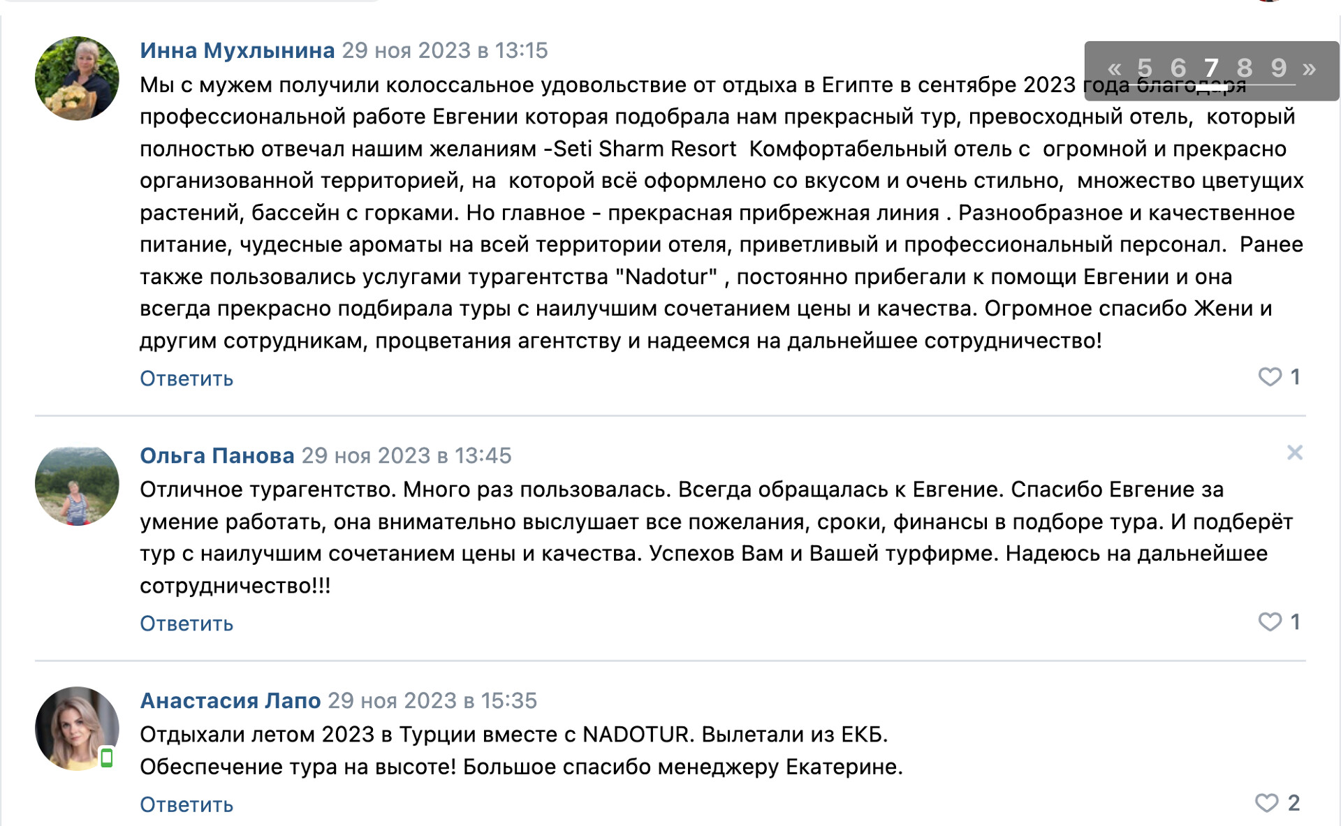 Сегодня Nadotur – это визово-туристическое агентство с 16-летней историей, прошедшее множество кризисов и пандемию. Это собственная школа агентов, где проходят обучение все менеджеры. Это готовые туры по России и зарубежным странам, а также качественный сервис и множество дополнительных услуг – бронирование отелей, авиа и ж/д билетов, страхование, визовая поддержка и многое другое.